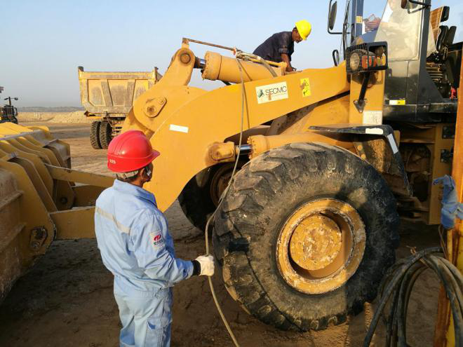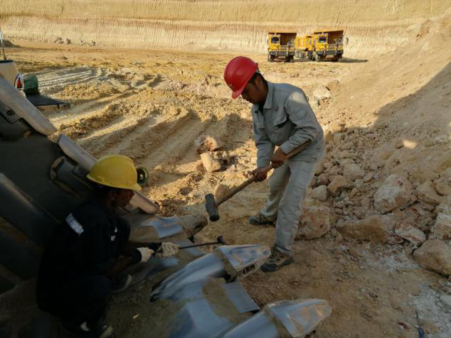 在塔尔半荒漠化的矿区,首先要面对困难是持续40°以上的高温天气,大型的机械在如此高温的环境下连续工作,对每一个部件来说都是严峻的考验。为此,设备部时刻关注各台挖机的工作状况,挖机手在操作过程中发现的任何小问题都及时上报,由设备部展开一系列的讨论,评估每一项可能出现的风险,制定严谨的解决措施。