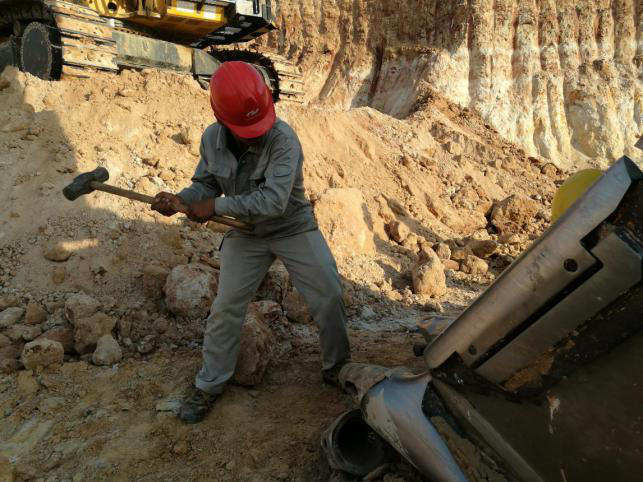 尽职尽责。每一项工作都尽全力做到最优。挖机的斗齿有时在长时间使用,在地层水的浸泡,泥土的侵蚀,烈日的炙烤下很难取下,这时则需要返回维修场地进行切割更换。在七月中旬的一次更换斗齿过程中,他们就遇到了这样的问题,但将挖机从采区驾驶到维修场地处理更换,再到返回采区工作,期间可能需要整整一天的时间,这将严重影响生产的进行。在设备部同事仔细观察之后,他们决定就地解决,两名同事抡起大锤一干就是两个多小时,铁锤与斗齿的撞击声清脆刺耳,回荡耳畔,在40°炎热的天气下汗水早已浸湿他们的衣服,肩膀早已酸痛难忍,但是每一次敲击依然坚定有力。面对困难与挑战,他们没有选择逃避与妥协,而是怀着迎难而上决心,倾尽全力去克服每一项挑战。